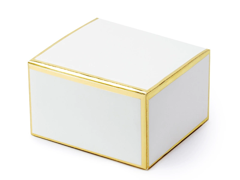 - Pudełeczka w kolorze białym ze złotymi metalizowanymi brzegami, wymiary po złożeniu ok. 6 x 3,5 x 5,5 cm. (1 op. / 10 szt.)