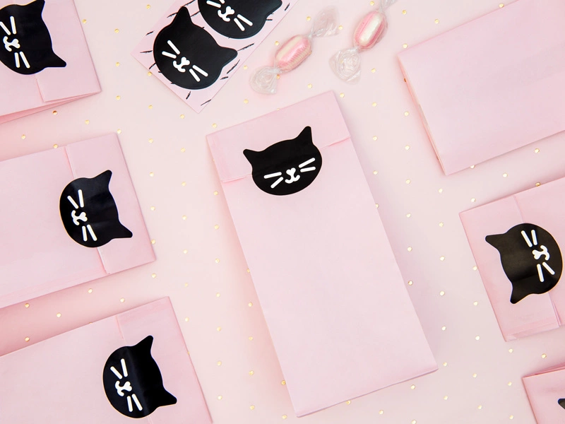 Wprowadź odrobinę magii na swoje przyjęcie z naszymi torebkami na słodycze Kotek! Idealne na urodziny, baby shower czy wieczór panieński, te urocze torebki z motywem kotka z pewnością zachwycą Twoich gości. Zestaw zawiera 6 różowych torebek i 6 naklejek, które dodadzą wyjątkowego charakteru każdemu wydarzeniu.