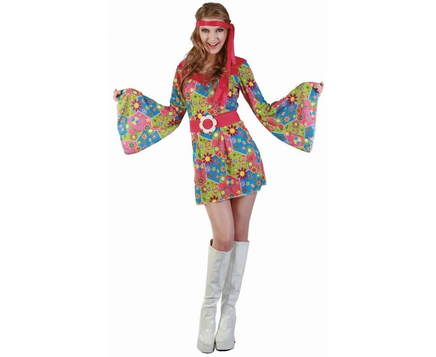Zestaw 'Kwiecista Hipiska' to komplet dla dorosłych: sukienka, opaska i pasek w rozmiarze M, wzór wielokolorowy. Przeznaczony na imprezy tematyczne — wieczór panieński, karnawał, festiwal czy przebrania retro. Lekki fason ułatwia ruch i zapewnia wygodę podczas tańca.