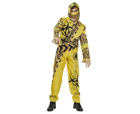 Zestaw to dorosły kostium składający się z kombinezonu z kapturem oraz dopasowanej maski, dostępny w rozmiarze 56. Kolorystyka: czarny z żółtymi akcentami. Materiał: 100% poliester. Sprawdzi się na Halloween, imprezy tematyczne, wieczór panieński oraz inne wydarzenia kostiumowe.