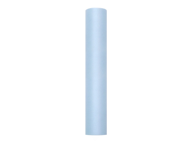 - Tiul gładki w kolorze błękitnym, na szpulce, wymiary 0,3x9 metrów.