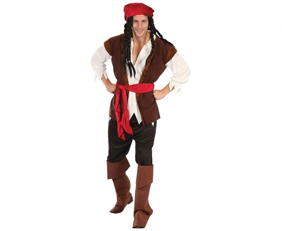 Zestaw dla dorosłych „Pirat” to komplet kostiumu zawierający bluzkę z kamizelką, spodnie z nakładkami na buty, pasek oraz nakrycie głowy. Rozmiar uniwersalny, kolory: biały, brązowy i czerwony. Przeznaczony na imprezy tematyczne, wieczory panieńskie, karnawał, Halloween czy sesje zdjęciowe.