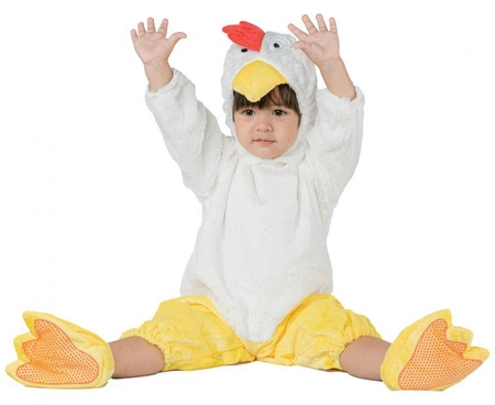 Komplet kostiumu "Mała Kurka" to zestaw dla dziecka zawierający kombinezon, kaptur i buciki w rozmiarze 92/104 cm. Żółty strój wykonano w 100% z poliestru; sprawdzi się na bale karnawałowe, przedstawienia szkolne, sesje zdjęciowe i zabawy przebierankowe. Łatwy do zakładania i utrzymania.