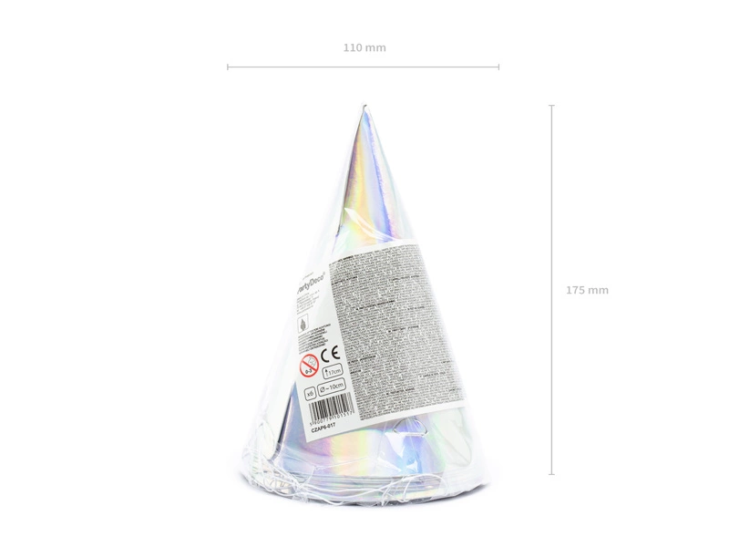 Wprowadź odrobinę magii na każdą imprezę z naszymi opalizującymi czapeczkami! Te eleganckie akcesoria o wysokości 16 cm i średnicy 10 cm są idealne na wesela, wieczory panieńskie, urodziny, Halloween, baby shower, Boże Narodzenie, Walentynki i wiele innych okazji. W jednym opakowaniu znajduje się 6 sztuk, co sprawia, że są one doskonałym wyborem na większe przyjęcia.