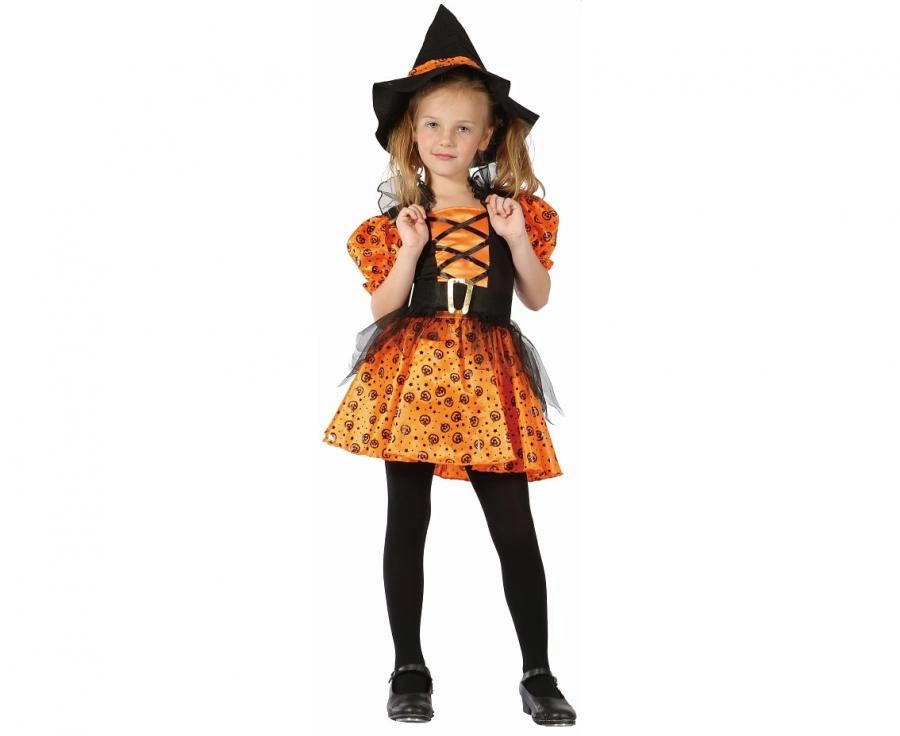 Zestaw dla dzieci Pomarańczowa Czarownica (sukienka, kapelusz, pasek), rozm. 120/130 cm