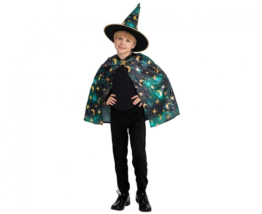 Zestaw dla dzieci Zielony Czarodziej ( peleryna, kapelusz), rozm. 110/120 cm