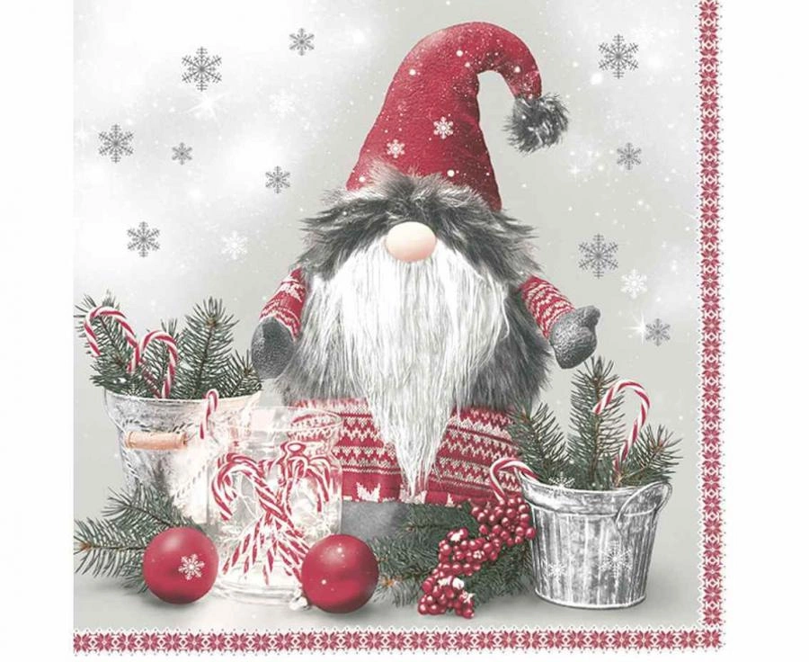 Serwetki papierowe Scandinavian Gnome with Candy Canes, 33x33 cm, 20 szt.
