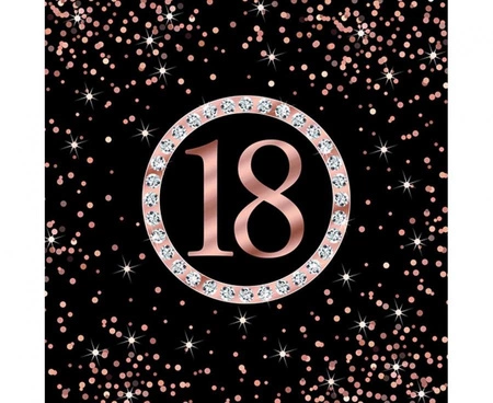 Serwetki Rose Gold 18th to praktyczne, dekoracyjne serwetki w opakowaniu 20 sztuk — sprawdzą się jako element dekoracji stołu lub tła do zdjęć.