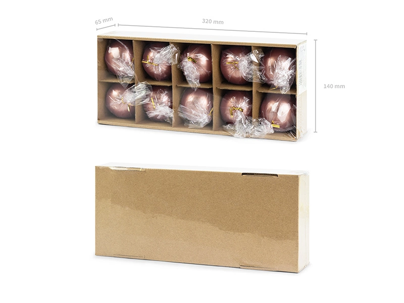 - Świeca metalizowana Kula w kolorze różowego złota, średnica ok. 6 cm. Czas palenia 1 sztuki ok. 8 godzin. (1 op. / 10 szt.)