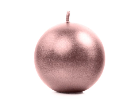 - Świeca metalizowana Kula w kolorze różowego złota, średnica ok. 8 cm. Czas palenia 1 sztuki ok. 20 godzin. (1 op. / 6 szt.)