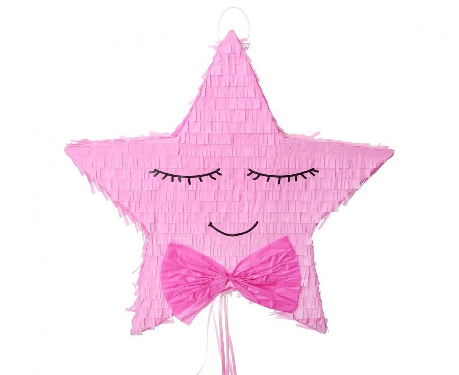 Piniata Gwiazdka różowa (45×8×43 cm) to papierowa piniata w kształcie gwiazdy, przeznaczona do wypełnienia drobnymi upominkami lub słodyczami. Nadaje się na urodziny, baby shower, wieczór panieński oraz jako element dekoracyjny tła do zdjęć.