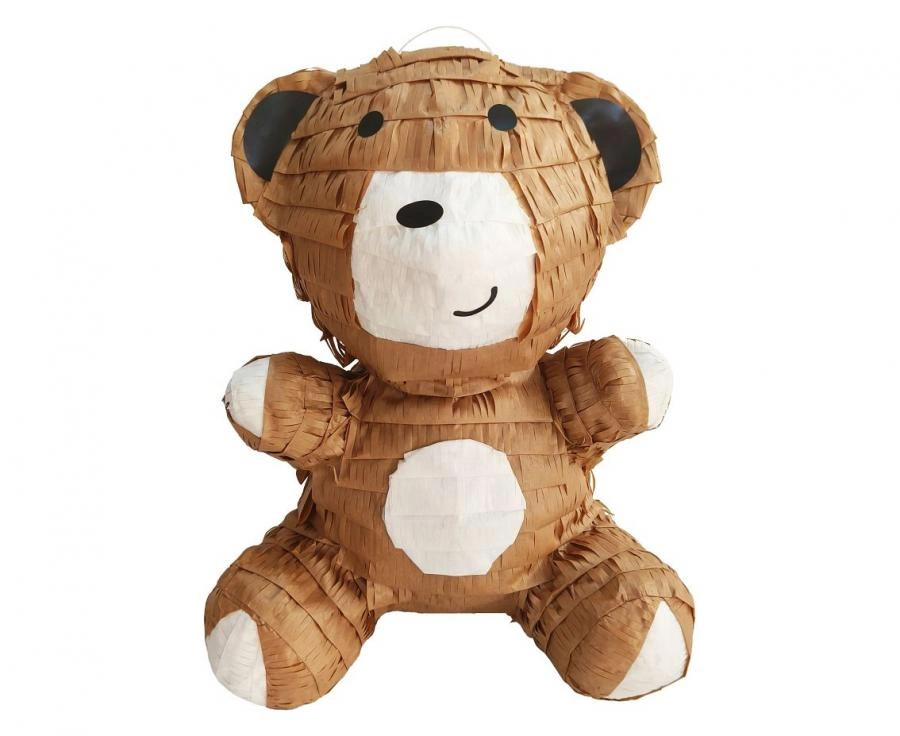 Piniata Miś 3D (35×24×44 cm) to brązowa piniata w kształcie misia przeznaczona na urodziny dzieci, kinderbale i rodzinne przyjęcia. Można ją napełnić słodyczami, drobnymi zabawkami lub konfetti i zawiesić jako element zabawy oraz dekoracji pomieszczenia.