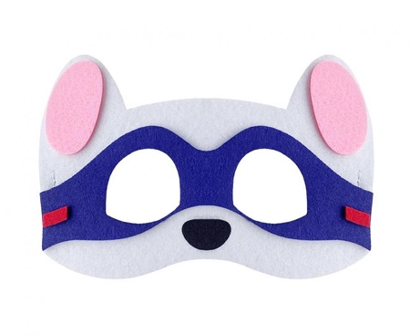 Filcowa maska „Psia Brygada – Superbohater” o wymiarach 18×12 cm, przeznaczona dla dzieci. Uniwersalny rozmiar, mocowana elastyczną gumką; dostępna w kolorach szarym, różowym i granatowym. Nadaje się na przyjęcia tematyczne, Halloween, urodziny i sesje zdjęciowe dzieci.