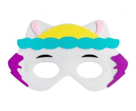 Maska filcowa „Psia Brygada - Ratowniczka górska” to lekka, dziecięca maska wykonana z filcu o wymiarach 17,5 × 12 cm w uniwersalnym rozmiarze. Przeznaczona do przebrań, urodzin, sesji zdjęciowych i zabaw tematycznych; mocowana na elastycznej gumce.