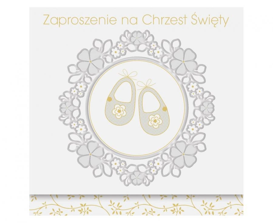 10 sztuk w opakowaniu • Zaproszenie do samodzielnego wypisania • Eleganckie tłoczenie • W komplecie koperta • Idealne na Chrzest