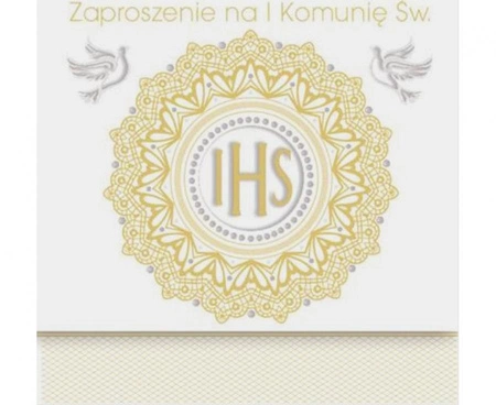 Tłoczone zaproszenia • Złoty nadruk • 10 szt. w opakowaniu • Idealne na Komunię • Kwadratowy format 12x12 cm
