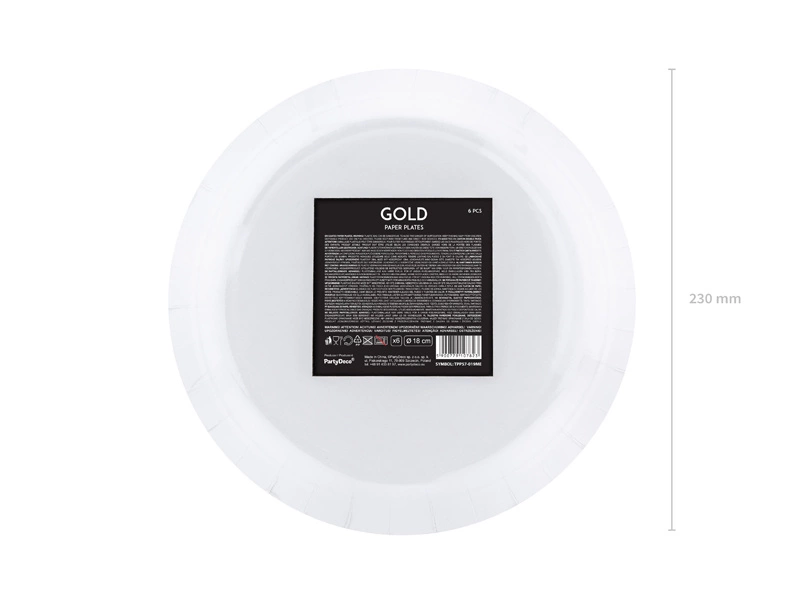 - Talerzyki papierowe okrągłe w kolorze złotym metalizowanym, średnica ok. 23 cm. Stary symbol: TPP36-019ME. (1 op. / 6 szt.)