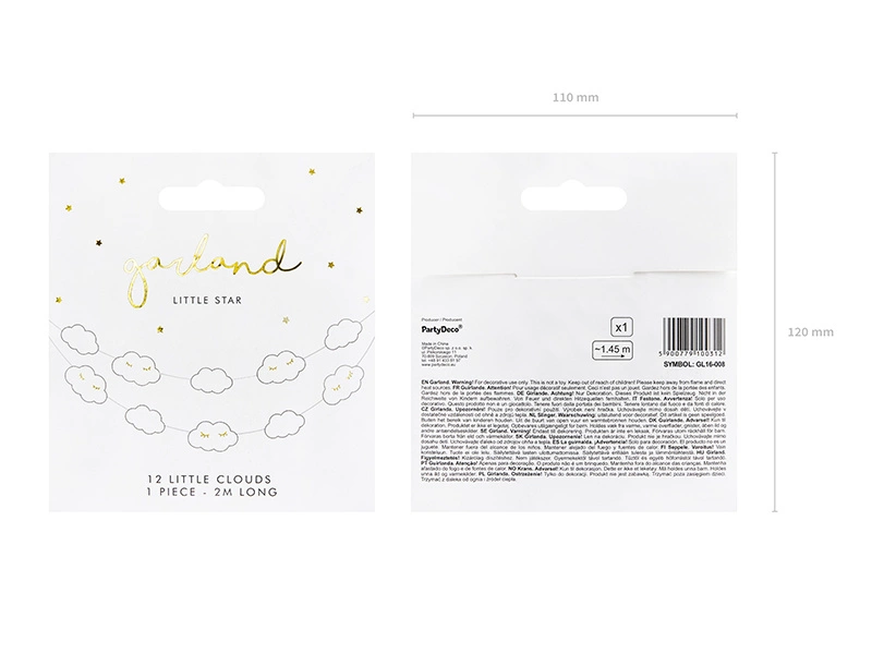Nie czekaj! Dodaj girlandę Little Star - Chmurki do swojego koszyka i spraw, aby Twoje wydarzenie stało się niezapomniane dzięki tej uroczej i eleganckiej dekoracji.