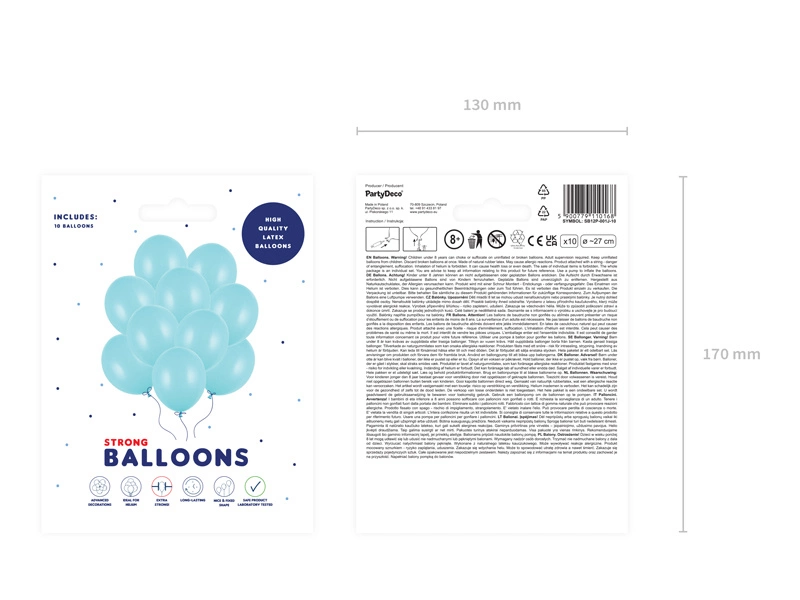 - Balony Strong w kolorze Pastel Light Blue, średnica 27 cm. (1 op. / 10 szt.)