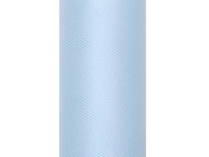 - Tiul gładki w kolorze błękitnym, na szpulce, wymiary 0,5x9 metrów.
