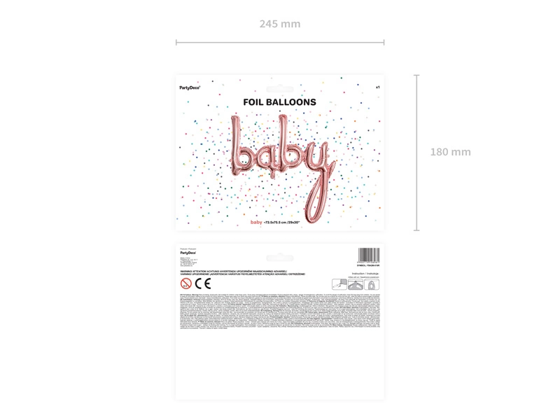 Wprowadź wyjątkowy akcent do swojego baby shower lub innej uroczystości z naszym balonem foliowym "Baby" w kolorze różowego złota. Ten elegancki balon o wymiarach 73,5 x 75,5 cm (29x30'') z pewnością przyciągnie uwagę i doda blasku każdej dekoracji.