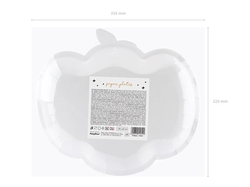 - Talerzyki papierowe Dynia w kolorze różowym z czarnym nadrukiem, wymiary ok. 25 x 22 cm. (1 op. / 6 szt.)