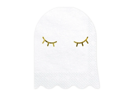 - Serwetki papierowe Duch w kolorze białym ze złotym metalizowanym nadrukiem, wymiary po rozłożeniu ok. 22.5 x 28 cm, wymiary po złożeniu ok. 11 x 14 cm. (1 op. / 20 szt.)
