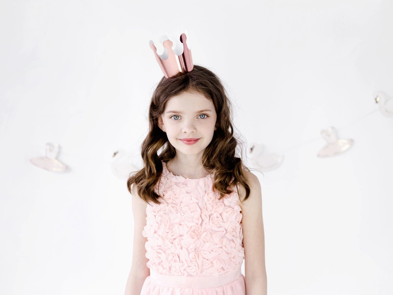 Rozświetl każdą imprezę z naszą stylową Koroną Party w odcieniu różowego złota! To doskonały wybór na wesela, wieczory panieńskie, urodziny, baby shower i inne wyjątkowe okazje. Wykonana z lustrzanego papieru, ta korona z pewnością przyciągnie wzrok i doda odrobinę luksusu każdemu wydarzeniu.