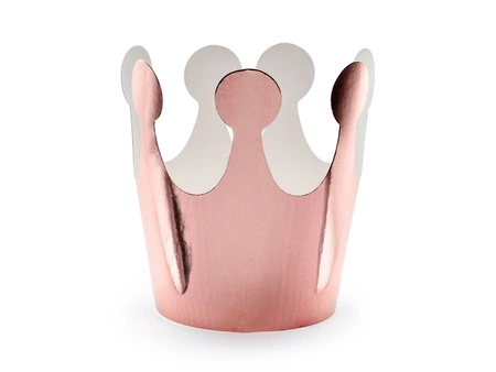 - Korona Party wykonana z papieru lustrzanego w kolorze różowego złota, wymiary po złożeniu: wysokość ok. 9 cm, średnica ok. 6 cm. (1 op. / 6 szt.)