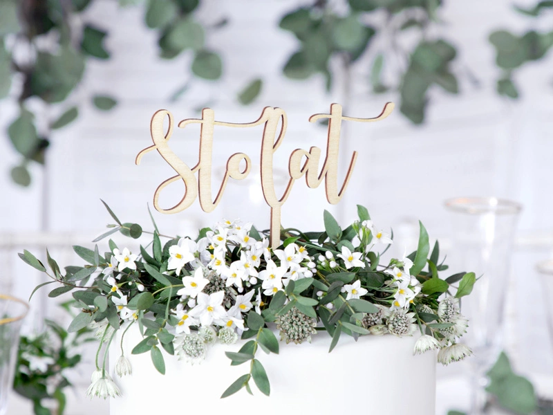Pro Tip: Unikaj umieszczania toppera na bardzo wilgotnych lub kremowych powierzchniach, aby drewno nie nasiąkło i nie straciło swojego wyglądu.