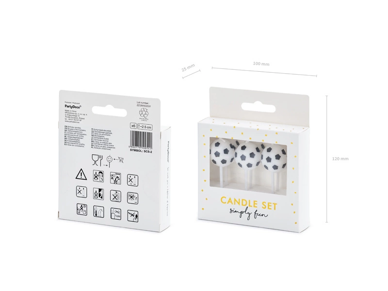 Wprowadź sportowy klimat na swoje urodziny dzięki świeczkom w kształcie piłek! Te stylowe, biało-czarne świeczki o wysokości 2,5 cm są doskonałym dodatkiem do tortu każdego fana piłki nożnej. W opakowaniu znajdziesz 6 sztuk, co pozwala na stworzenie imponującej dekoracji.