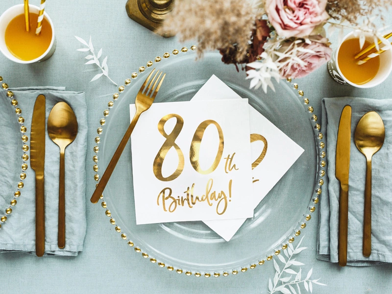 Zapraszamy do zakupu naszych serwetek 80th Birthday, które wprowadzą blask i elegancję do każdej uroczystości. Spraw, aby ten wyjątkowy dzień był jeszcze bardziej niezapomniany!