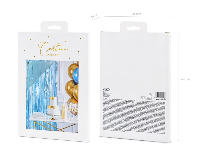 Wprowadź odrobinę magii i elegancji na każdą imprezę z naszą metalizowaną Kurtyną Party w kolorze niebieskim! Idealna na wesela, wieczory panieńskie, urodziny, Halloween, baby shower, Boże Narodzenie, Walentynki i wiele innych okazji. Ta kurtyna o wymiarach 90 cm szerokości i 250 cm wysokości z pewnością przyciągnie uwagę i stworzy niezapomnianą atmosferę.