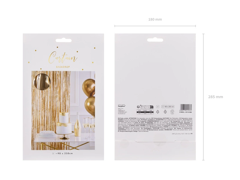 Przenieś swoją imprezę na wyższy poziom z naszą złotą kurtyną party! Doskonała na wesela, wieczory panieńskie, urodziny, Halloween, baby shower, Boże Narodzenie, Walentynki i wiele innych okazji. Ta metalizowana kurtyna o wymiarach 90x250 cm z pewnością przyciągnie uwagę i stworzy niezapomnianą atmosferę.