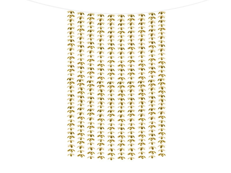 - Kurtyna - Kwiatki wykonana z folii w kolorze złotym, wymiary: szerokość ok. 100 cm, długość ok. 210 cm.