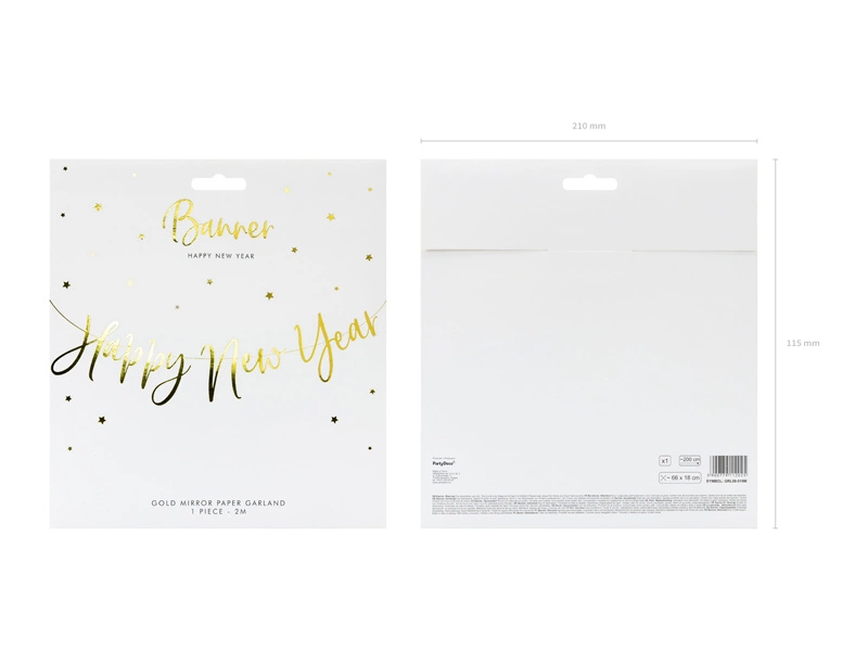 Rozpocznij Nowy Rok z klasą dzięki naszemu stylowemu banerowi "Happy New Year"! Ten lśniący, złoty baner wykonany z wysokiej jakości lustrzanego papieru z pewnością doda blasku każdej sylwestrowej imprezie. Mając 66 cm długości i 18 cm wysokości, jest idealnym elementem dekoracyjnym do wnętrz.