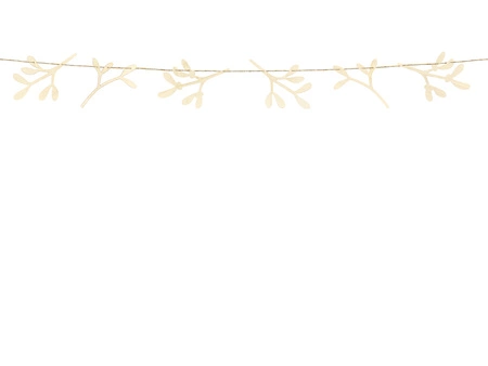 - Girlanda Jemioła wykonana z drewna, zestaw zawiera 3 wzory gałązek, po 2 z każdego wzoru oraz ok. 2 m lnianego sznurka, wymiary po złożeniu: długość ok. 127 cm, wysokość ok. 10,5 cm. Produkt do samodzielengo złożenia.