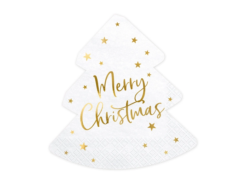 Wprowadź świąteczny blask na swój stół dzięki serwetkom Choinka - Merry Christmas! Te stylowe serwetki w kolorze białym z metalizowanym złotym nadrukiem i napisem "Merry Christmas" stanowią doskonały dodatek do każdej bożonarodzeniowej uroczystości. Po rozłożeniu mają wymiary ok. 30,5 x 32,5 cm, a po złożeniu 16 x 16,5 cm. W opakowaniu znajduje się 20 sztuk.