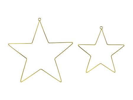 - Zawieszki dekoracyjne Gwiazdy wykonane z metalu w kolorze złotym metalizowanym, zestaw zawiera 2 gwiazdy, średnica ok. 20 cm i ok. 28 cm. (1 op. / 2 szt.)