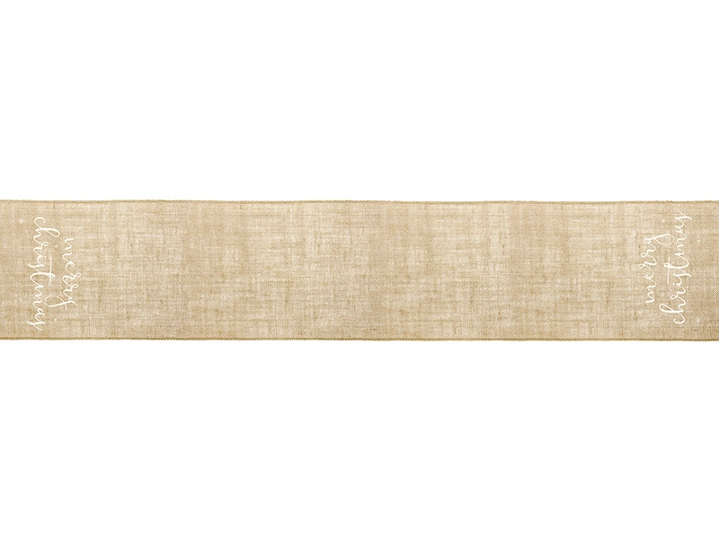 - Bieżnik jutowy z białym napisem Merry Chistmas na obu końcach, szerokość ok. 50 cm, długość ok. 250 cm.