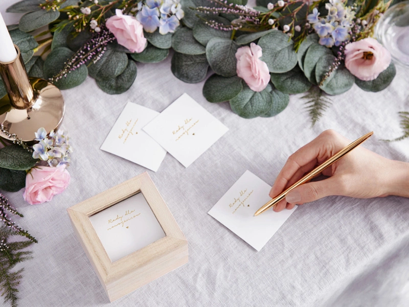 - Zapewnij długopisy lub pióra w pobliżu pudełka, aby ułatwić gościom pisanie.