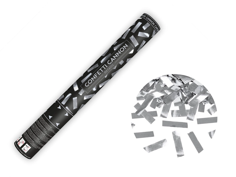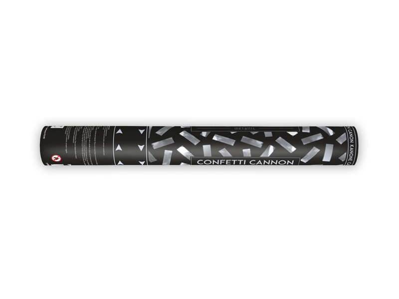 - Tuba strzelająca metalicznym konfetti w kolorze srebrnym, długość 40 centymetrów.