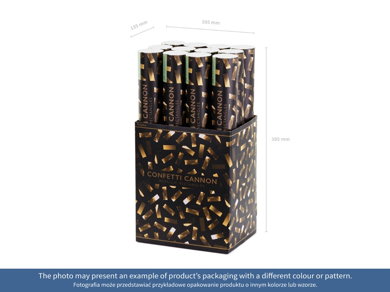 - Tuba strzelająca metalicznym konfetti w kolorze złotym, długość 40 centymetrów.