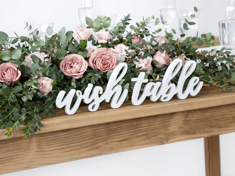 Wprowadź odrobinę magii i elegancji do swojej imprezy dzięki drewnianemu napisowi "Wish table". To idealny sposób na stworzenie niezapomnianej atmosfery i zaskoczenie swoich gości. Zamów już dziś i spraw, aby Twoje wydarzenie było naprawdę wyjątkowe!