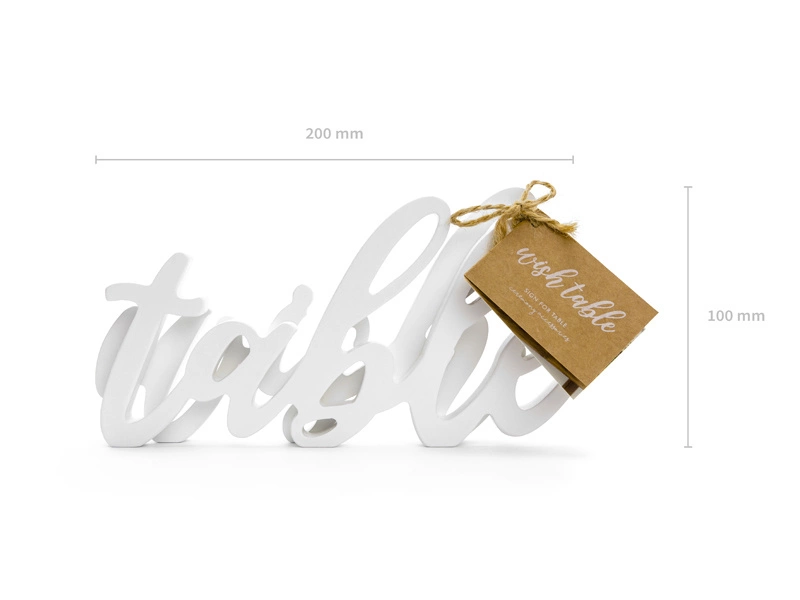 Wprowadź odrobinę magii i elegancji do swojej imprezy dzięki drewnianemu napisowi "Wish table" w klasycznym białym kolorze. To doskonały dodatek na wesela, wieczory panieńskie, urodziny, baby shower, Boże Narodzenie, Walentynki i inne wyjątkowe okazje. Zestaw zawiera dwa napisy: "wish" (17 x 10 cm) i "table" (18,5 x 9,5 cm).