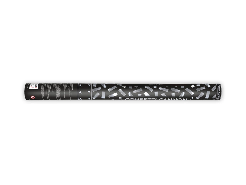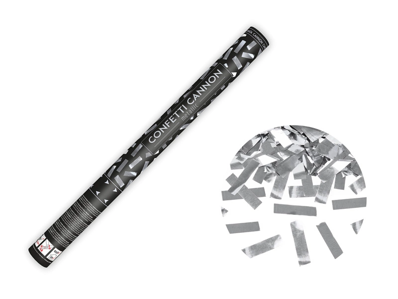 - Tuba strzelająca metalicznym konfetti w kolorze srebrnym, długość 60 centymetrów.