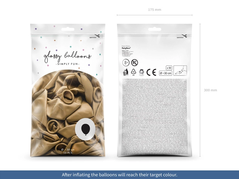 Chcesz, aby Twoja impreza lśniła wyjątkowym blaskiem? Nasze złote balony Glossy to idealne rozwiązanie! Te stylowe balony o średnicy 30 cm doskonale sprawdzą się na weselach, wieczorach panieńskich, urodzinach, Halloween, baby shower, Bożym Narodzeniu, Walentynkach i wielu innych okazjach. W opakowaniu znajdziesz 50 sztuk, co pozwala na stworzenie imponującej dekoracji.