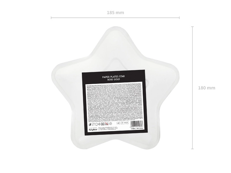 - Talerzyki Gwiazdka wykonane z papieru metalizowanego w kolorze różowego złota, średnica ok. 18 cm. (1 op. / 6 szt.)