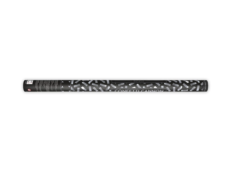 - Tuba strzelająca metalicznym konfetti w kolorze srebrnym, długość 80 centymetrów.
