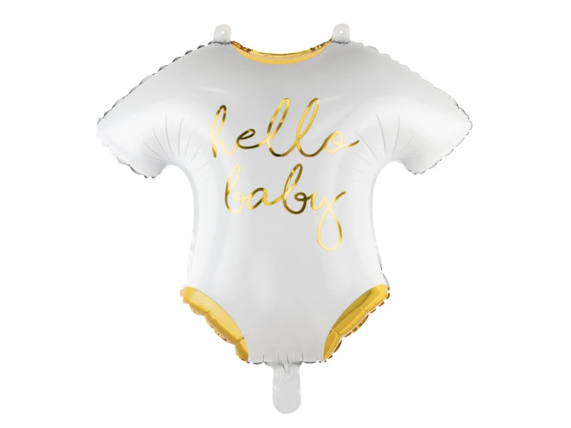 - Matowy balon foliowy w kształcie śpioszków w białym kolorze ze złotym metalicznym nadrukiem, wymiary ok. 51 x 45 cm (20 x 18'').